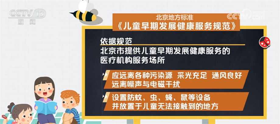 依據(jù)規(guī)范,北京市提供兒童早期發(fā)展健康服務(wù)的醫(yī)療機(jī)構(gòu)服務(wù)場(chǎng)所應(yīng)遠(yuǎn)離各種污染源,采光充足,通風(fēng)良好,遠(yuǎn)離噪聲與電磁干擾;設(shè)置防蚊、蟲(chóng)、蠅、鼠等設(shè)備,并放置于兒童無(wú)法接觸到的地方;室內(nèi)空氣溫度、濕度、化學(xué)性、生物性及放射性物質(zhì)濃度應(yīng)符合相關(guān)要求。應(yīng)設(shè)置哺乳室,面積不少于10平方米;設(shè)置 幼兒專用便器、洗手池等衛(wèi)生設(shè)施;服務(wù)設(shè)施應(yīng)光滑、牢固,無(wú)尖銳棱角、鋒利切面、毛邊、倒刺、零件脫落、繩索等安全隱患。
