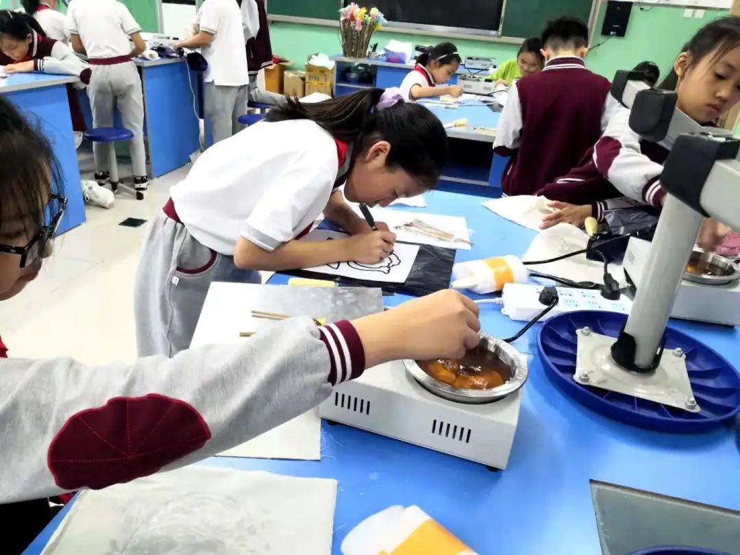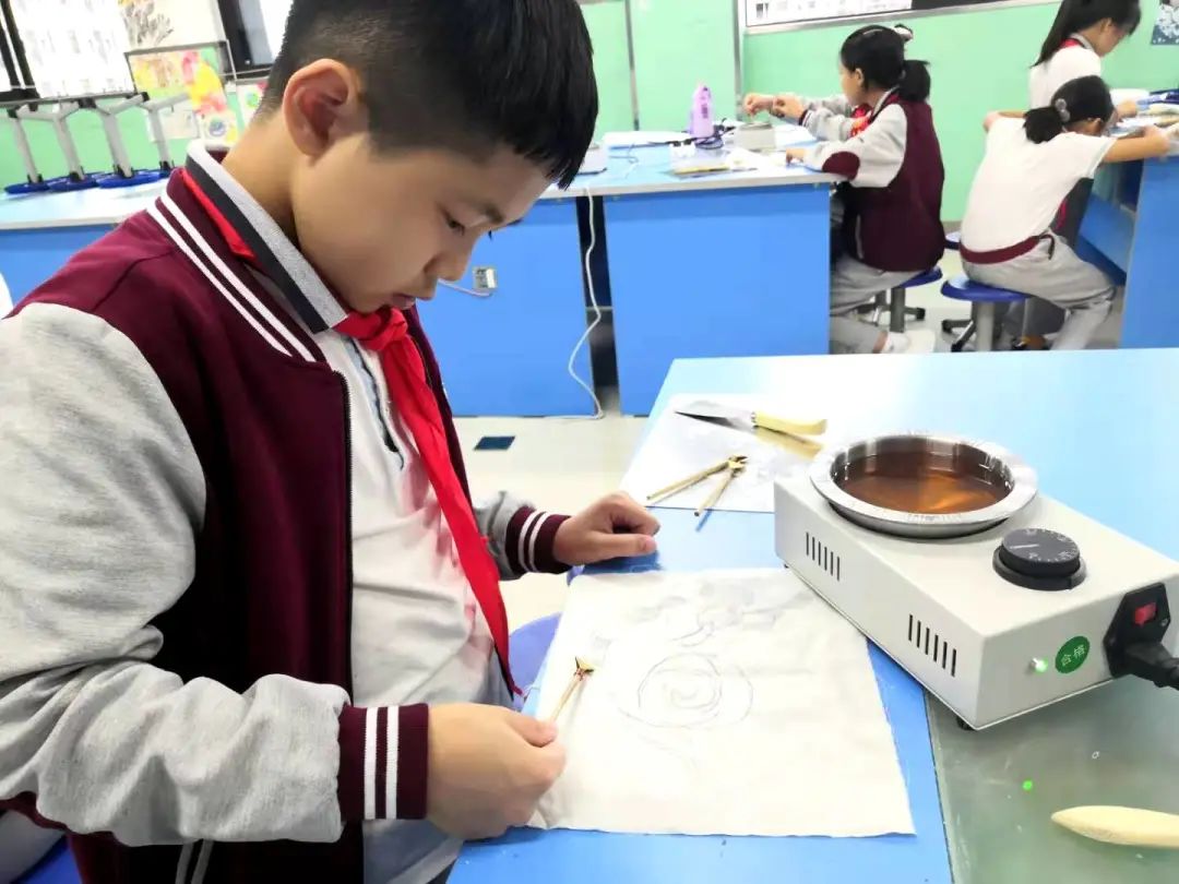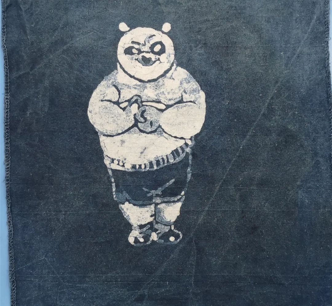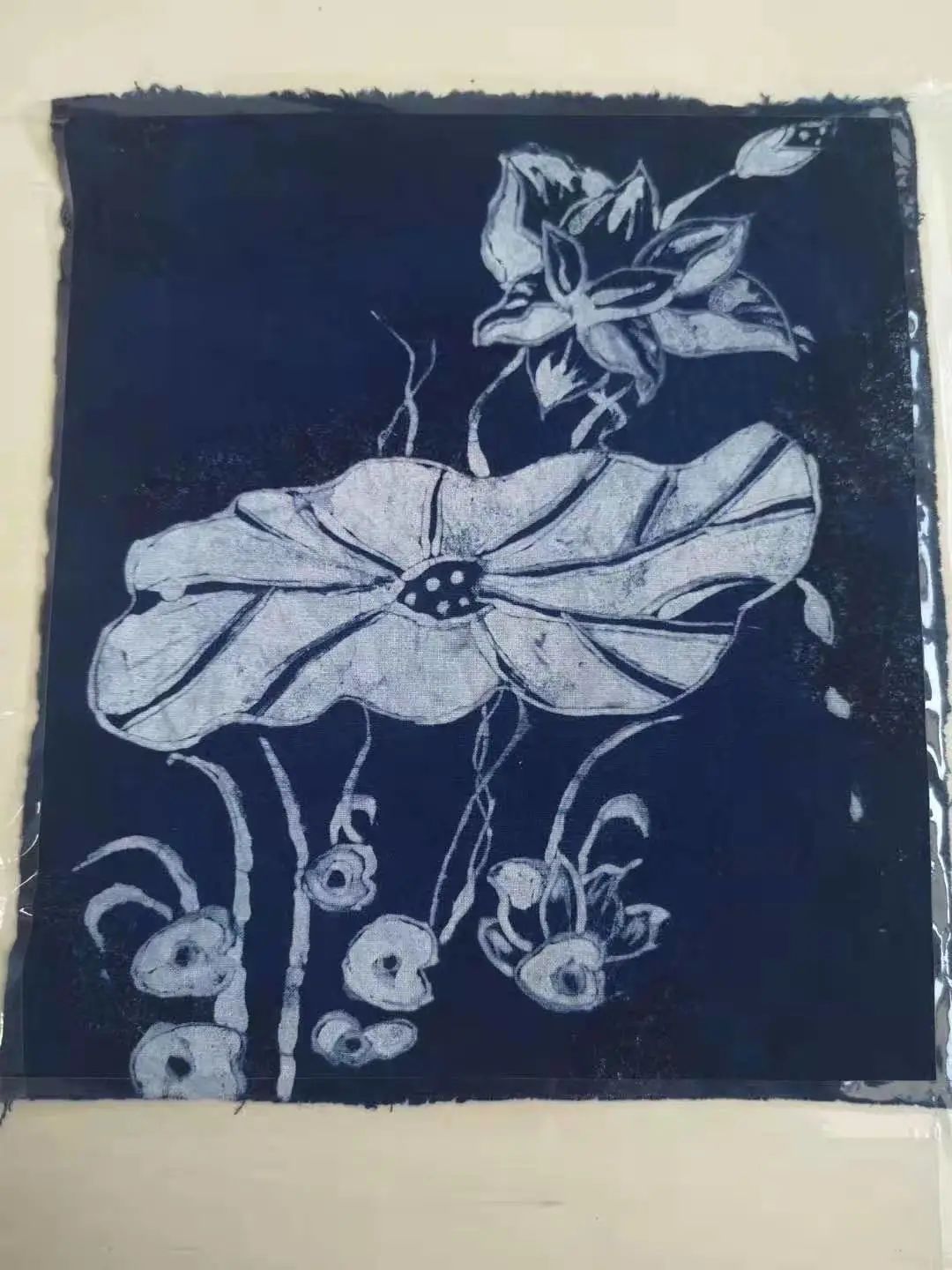 蠟染是用蠟刀蘸熔蠟繪花于布后以藍靛浸染,既染去蠟,布面就呈現(xiàn)出藍底白花或白底藍花的多種圖案。